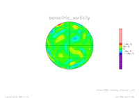 結果 : 回転球面における 2 層減衰乱流の数値計算 (T42)