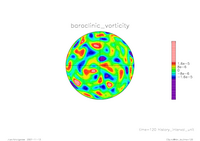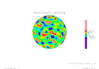 結果 : 回転球面における 2 層減衰乱流の数値計算 (T42)