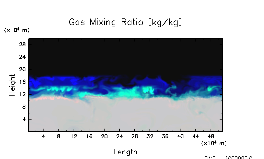 凝結成分気体混合比(赤: H2O, 緑: H2S, 青: NH3)
