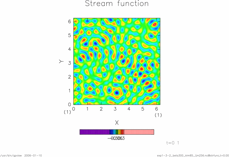 渦度, 東西平均流速分布, 流線関数, 全エンストロフィー, エンストロフィースペクトル, 全運動エネルギー, エネルギースペクトル