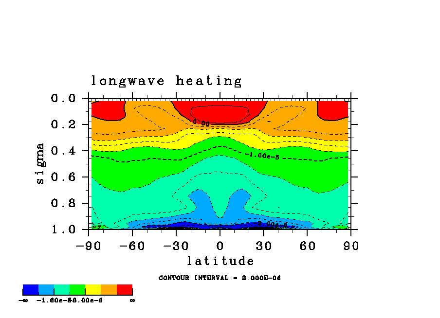 温度 + (u, -SigDot) の (x,z) 断面 at 赤道