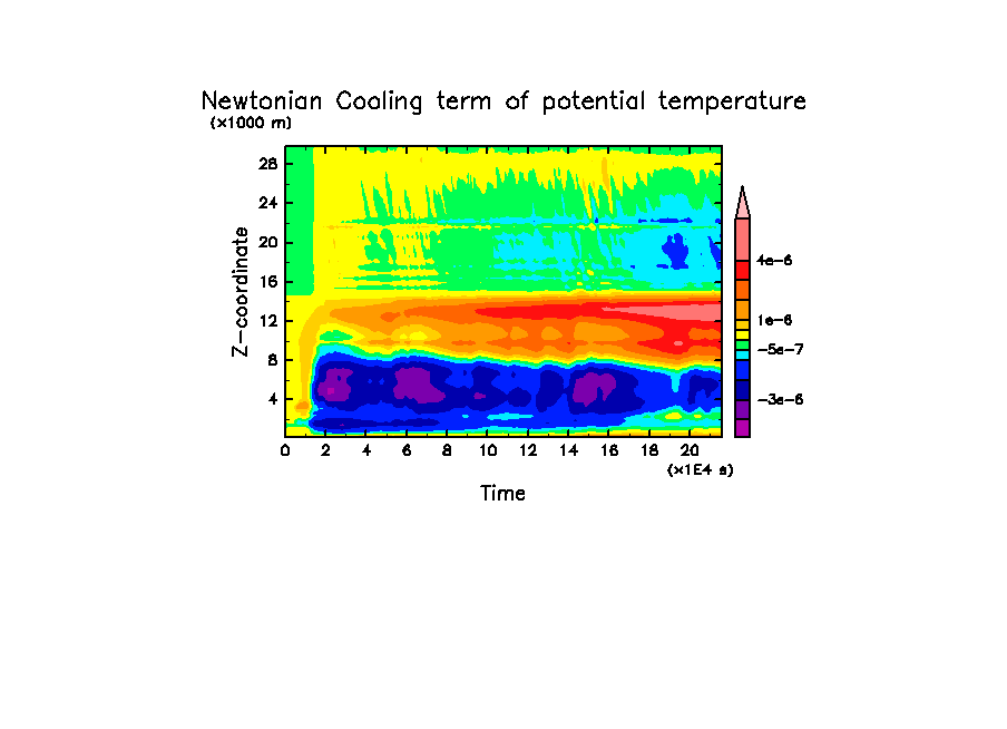 - -2 [K] * (15 [km] - z)/5 [km] [K/day]