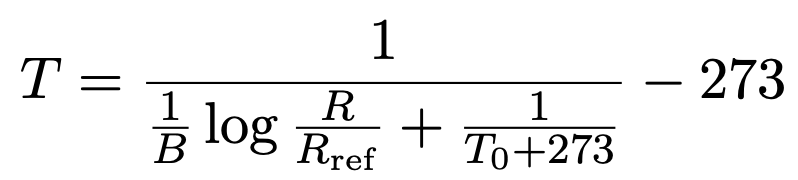 12 float Temp = 1.0 / ( 1.0 / B * log( (V - voltage) / (voltage/ Rref) / Rref) + 1.0 / (To + 273.0)) - 273.0;