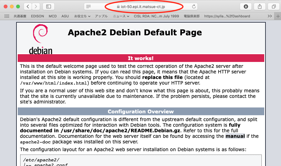 ブラウザから https://YYYY.epi.it.matsue-ct.ac.jp/~hogehoge (YYYY は学生番号, hogehoge は自分のユーザ名) にアクセスしてみて, 認証がうまくいくか確認すること.
