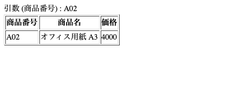 SQL 文 : SELECT * from 商品 where 商品番号 = '?'  (? は文字型)