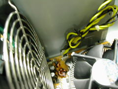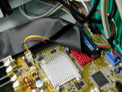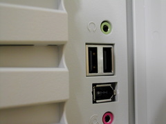 最近は良く見る前面 USB 2.0 および IEEE 1394 コネクタ, そして音声入出力. この内側からマザーボードに伸びているケーブルを取り外していきます. |