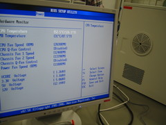 組み立てた後は, ちゃんと動作チェック. 特に「CPU Temperature」は要チェック. (CPU ファンの取り付け方が甘いと, 熱で CPU が壊れたり, 最悪火事になったり).  |