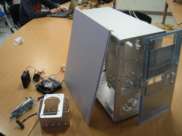 分解するとこうなります. スイッチ, LED 類, 筐体前面ファン, 筐体背面ファンも取り外せます.
