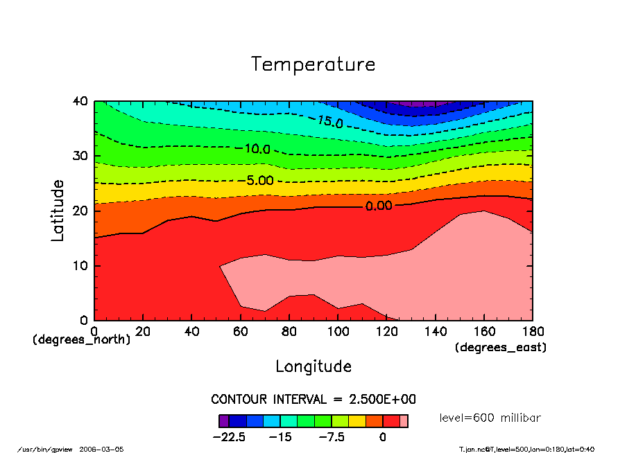 % gpview T.jan.nc@T,level=500,lon=0:180,lat=0:40