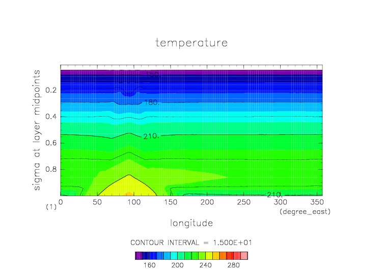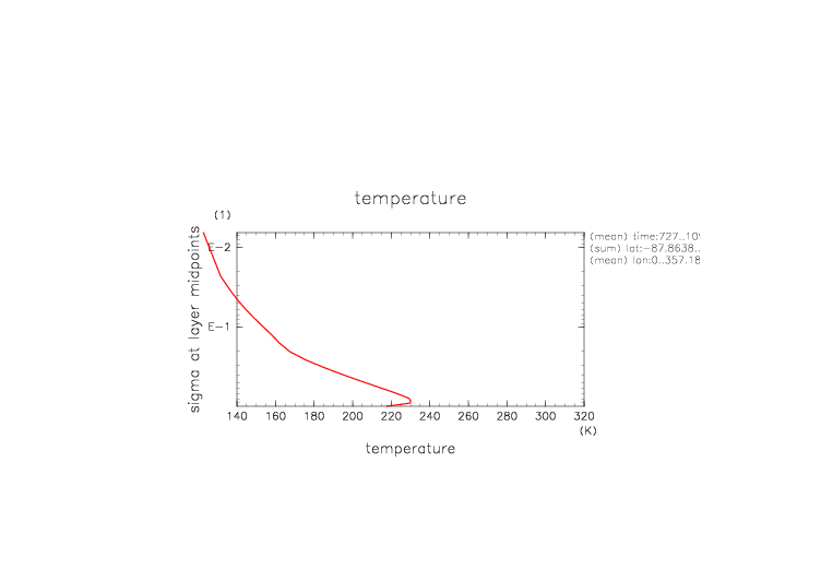 温度. 東西平均 (鉛直座標は対数プロット) |