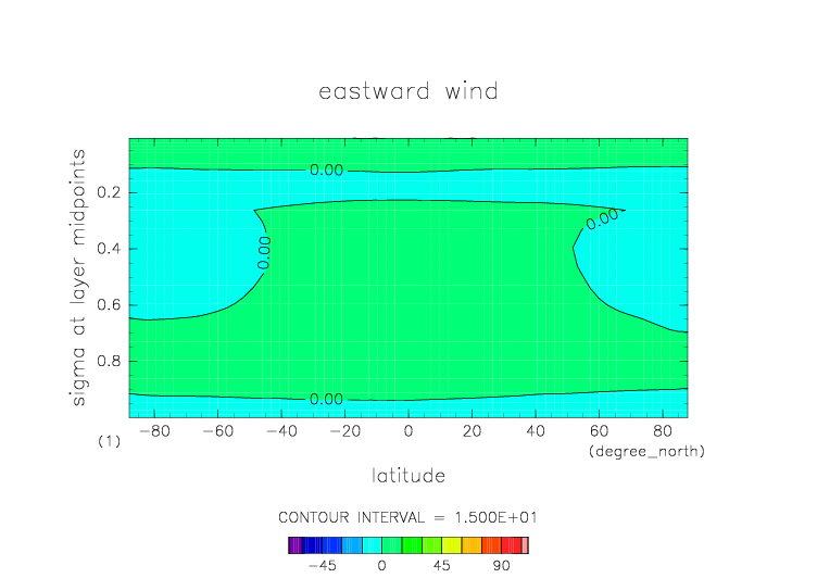 sigma=0.077 における東西風 |