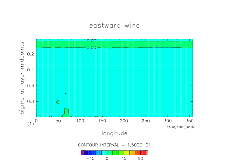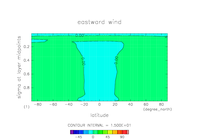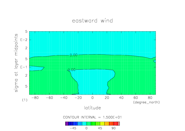 sigma=0.077 における東西風 |