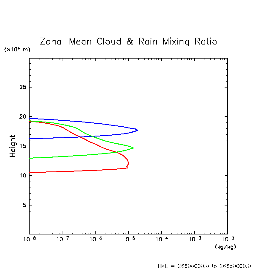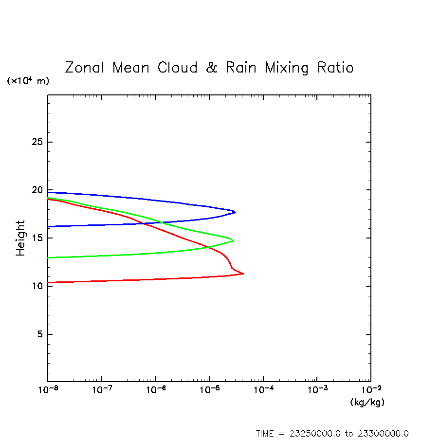 凝結物混合比の水平・時間平均(赤: H2O, 緑: NH4SH, 青: NH3)